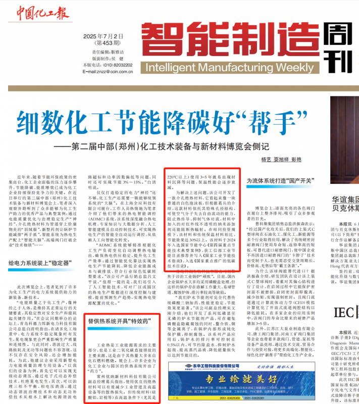 《中國化工報》:優(yōu)納新材替供熱系統(tǒng)開具“特效藥”